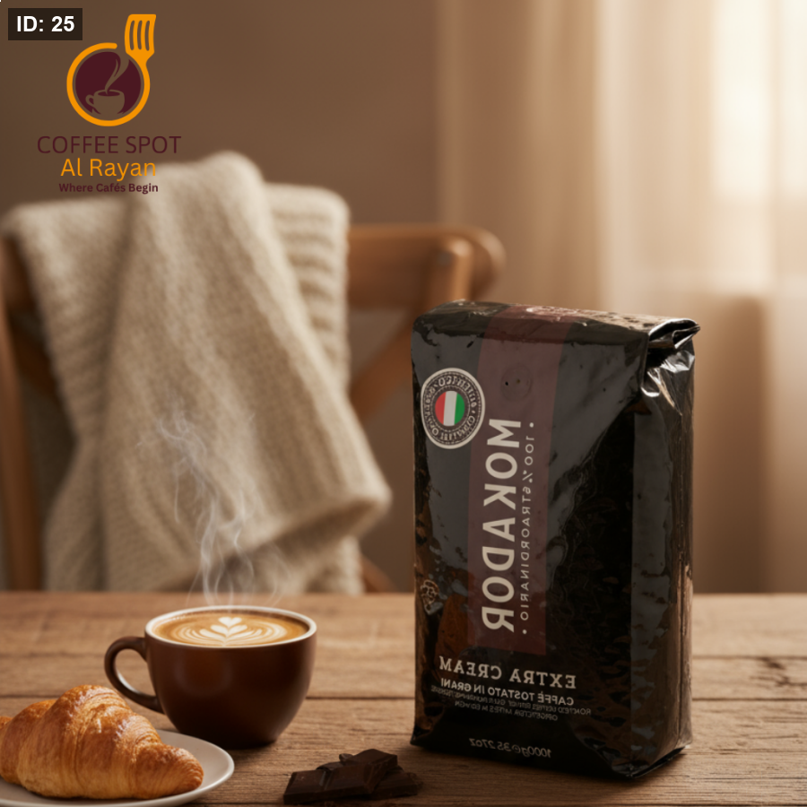تتميز قهوة موكادور بمزيجها المكون من 70/30 من حبوب أرابيكا وروبوستا مع كريمة ثابتة بشكل رائع